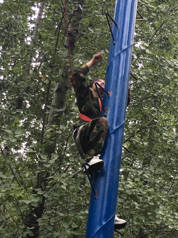 面對***后的逃生墻時,大家甘當(dāng)人梯的精神,深深的感動了我,大家干勁十足,在吶喊的加油聲中,男生們努力的抓住每一雙手,我們踩在他們的背上,膝蓋上不斷的攀爬,那一刻他們用自己的臂膀支撐著我們完成***后的挑戰(zhàn)!